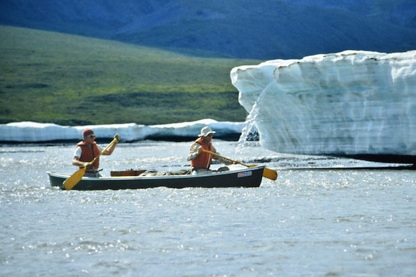 Two paddlers, part of the canoe group David P. Silcox belongs to, travel the Kongakut River in Alaska, where there is no lack of Arctic ice in evidence.TIM KOTCHEFF/Supplied