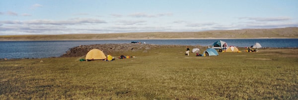 Our trip down the Hood River in 1980 was a case in point, since the temperature was pleasantly warm the entire time. But when we reached the saltwater of Bathurst Inlet, even at 9 a.m., my thermometer registered an astonishing 32 degrees. The sky was clouded with smoke from wildfires 1,200 to 1,400 km to the south in Alberta, the sun was a blood-red ball in the sky, and the plane that was due to pick us up was a day late because of heavy smoke it had to fly through to get to our agreed-upon rendezvous.