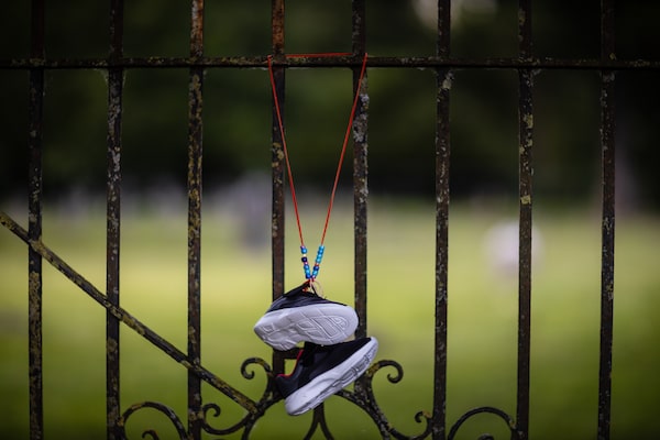 Children’s shoes are displayed as part of a memorial for victims of Indian Residential Schools at the Oblates of Mary Immaculate cemetery in Mission B.C. in June 2021.Melissa Tait/The Globe and Mail