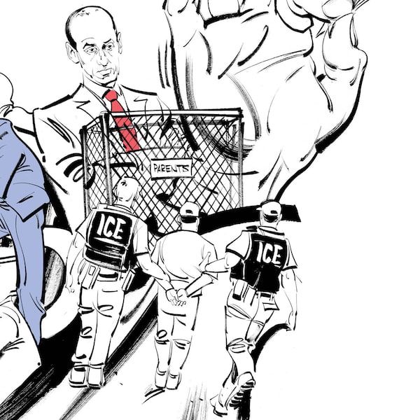 Mr. Trump’s U.S.-Mexico border wall never quite materialized on the scale he planned, but asylum seekers in the United States faced even more hazardous obstacles, from Immigration and Customs Enforcement raids to children being separated from their families locked in cages. Right-wing adviser Stephen Miller, left, helped stoke the President’s anti-immigration agenda.