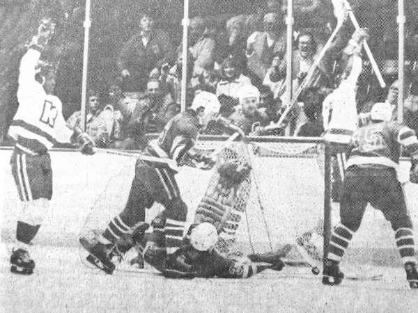 Bernie Saunders, seen here celebrating on the left, was the fifth Black player to play for a National Hockey League team.MLive Media Group/Kalamazoo Gazette/MLive Media Group/Kalamazoo Gazette