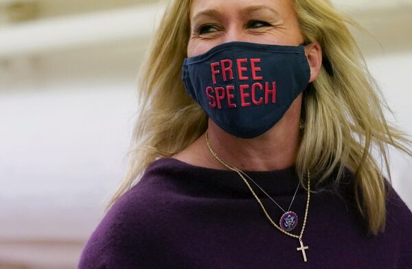 The Democrats’ action against Ms. Greene was deemed to be without precedent. Republicans bitterly complained of the precedent of the majority party stripping opposition members of committee assignments on account of statements that don’t meet its approval.