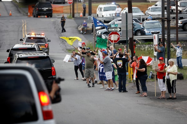 Supporters of U.S. President Donald Trump jeer the motorcade of Democratic presidential candidate and former U.S. vice-president Joe Biden as it passes by in Dunmore, Pa., on July 9, 2020.Matt Slocum/The Associated Press