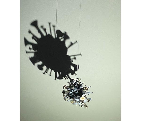 An elderly Palestinian woman holds a model of SARS-CoV-2, the virus that causes COVID-19, in a nursing home in Jenin, in the Israeli-occupied West Bank. The home has stepped up preventative measures to keep residents safe from the disease.Raneen Sawafta/Reuters/Reuters