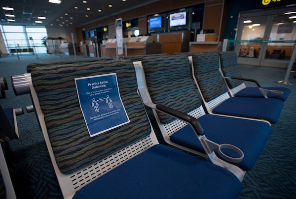 Near empty waiting areas at the flight gates are pictured at Vancouver International Airport on June 9, 2020.JONATHAN HAYWARD/The Canadian Press