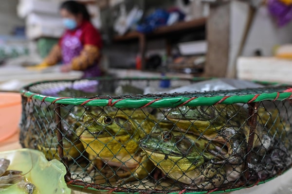 Frogs are displayed for sale at a wet market in Shanghai, China, on April 29, 2020.HECTOR RETAMAL/AFP/Getty Images