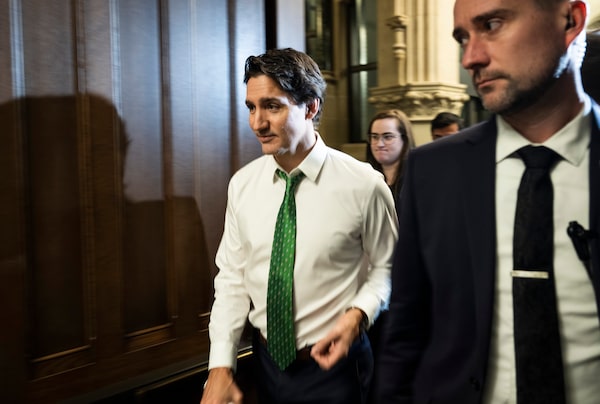 Prime Minister Justin Trudeau heads into a meeting of the Liberal caucus after speaking to reporters on Parliament Hill in Ottawa on March 8.Justin Tang/The Canadian Press