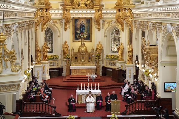 Pope Francis presides over evening prayers at Quebec City's Cathedral-Basilica of Notre-Dame de Quebec during a Canadian tour last summer. For centuries, the Church has had a deep influence on politics and social values in Quebec.Nathan Denette/The Canadian Press