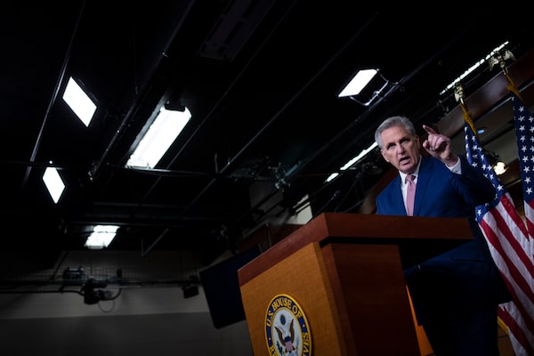 House Minority Leader Kevin McCarthy speaks during his weekly news conference in Washington on Jan. 13, 2022.Tom Brenner/The New York Times News Service