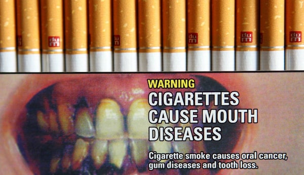 Canada next became the first country in the world to legislate pictorial health warnings onto cigarette packages. These often-gruesome, memorable images occupied 50 per cent of the space on every pack: “Smoking causes impotence,” one warning simply stated, accompanied by a large photo of a cigarette drooping downward in sexual defeat. The warnings were clever, effective and memorable.