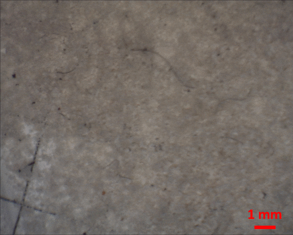 Microscope images of a processed stool sample, as seen under white and black light. The bright objects visible under the black light are plastic particles. Because plastic will fluoresce under black light, this is one technique to detect even the tiniest plastic fibres and fragments.Nathan Eddingsaas