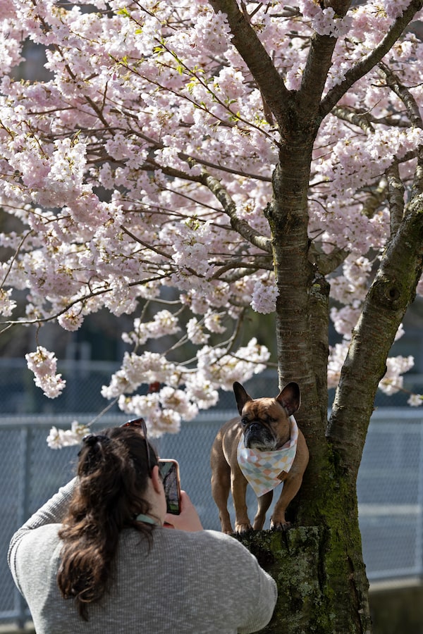 Vancouverites enjoy March's cherry blossoms in David Lam Park. By 2050, the city hopes to raise its tree canopy by 30 per cent.Chris Helgren/Reuters