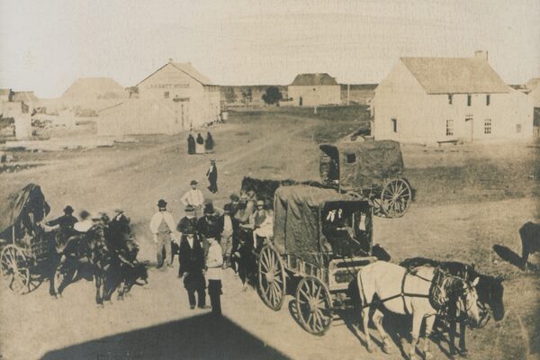 The corner of Portage Avenue and Main Street in Winnipeg in 1872, ten years after two businessmen started construction on a general store, spawning a boom of development in the area.Public Domain via Wikimedia Commons/British Library