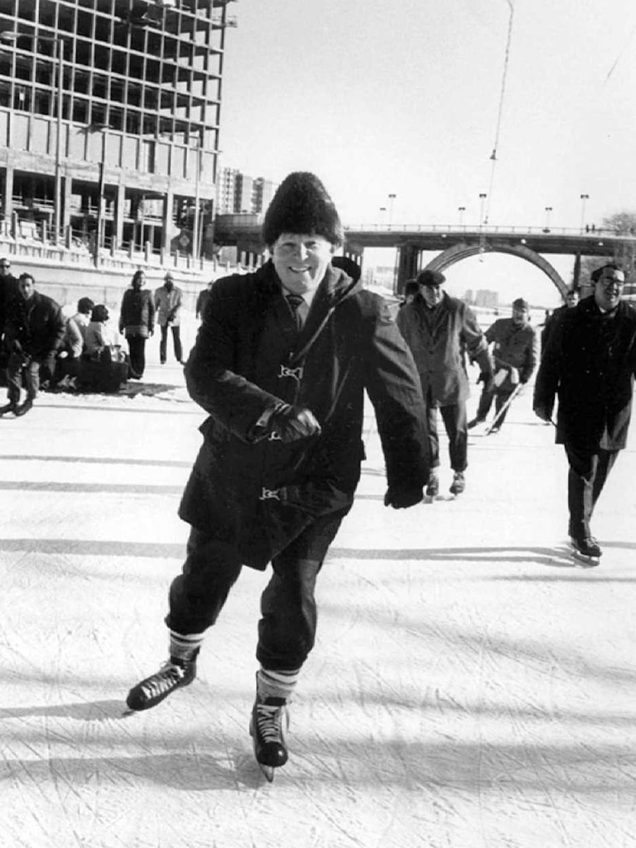 Almost everyone is on skates. Couples, hand in hand, gliding in lockstep. Toddlers on (double-bladed) “cheese cutters,” falling. Kids roughhousing. Mothers pushing babies in carriages. Civil servants in hooded parkas, carrying briefcases. Parliamentarians on their way to the Hill, like the late John Godfrey, who sported a flowing Tyrolean coat and flamboyant headwear. Truant students in vintage anoraks. Speed skaters straining in bright, skin-tight Lycra, floating over polished marble. Novices, bundled up, lurching down an icy corduroy road.