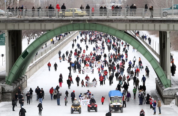Crowds gather on the canal for a parade of NHL trophies on Jan. 12, 2012, in the leadup to an all-star game to be played in Ottawa that weekend. Warm weather kept the canal season that year to just 28 skating days; in an average year, there are about 50.Fred Chartrand/The Canadian Press