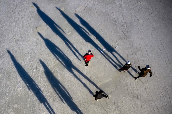 Skaters cast shadows over the Rideau Canal this past Jan. 21, the first of a four-day window when the public could use only part of the surface this year.Justin Tang/The Canadian Press
