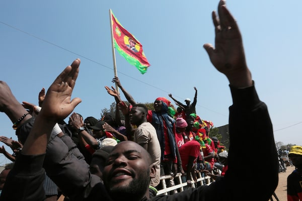 Supporters of Hakainde Hichilema gather outside the party's offices, in Lusaka, Zambia, on Aug. 14, 2021. Mr. Hichilema’s victory at the polls is a harbinger of Africa’s growing political maturity.Tsvangirayi Mukwazhi/The Associated Press