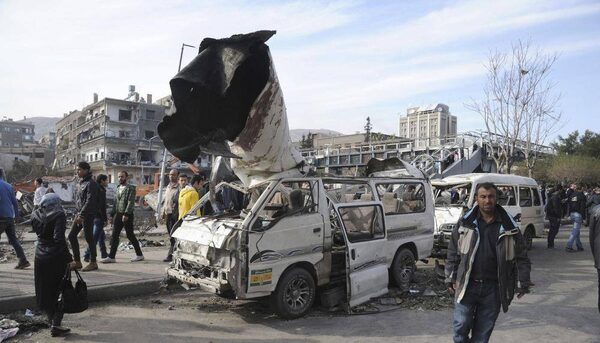 SANA, the state news agency, referred to the blast as a "terrorist bombing" – nothing new there – and said it also caused damage to a hospital and school in the area. Mini-buses parked at a nearby bus station were also destroyed. Footage broadcast on state television showed residential buildings located close to the blast area. A SANA reporter said "authorities" also seized a car loaded with "cylinder-shaped bath water heaters filled with explosives in the site of the bombing."