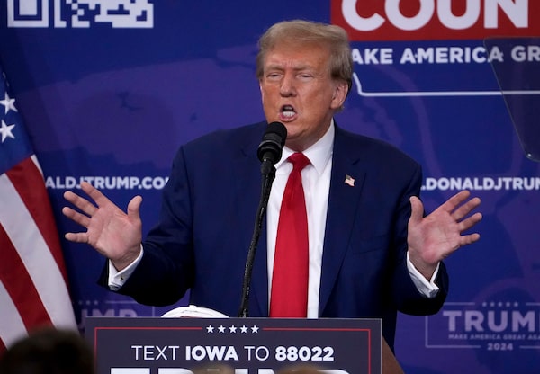 Former President Donald Trump speaks during a campaign rally on Nov. 18], in Fort Dodge, Iowa.Bryon Houlgrave/The Associated Press