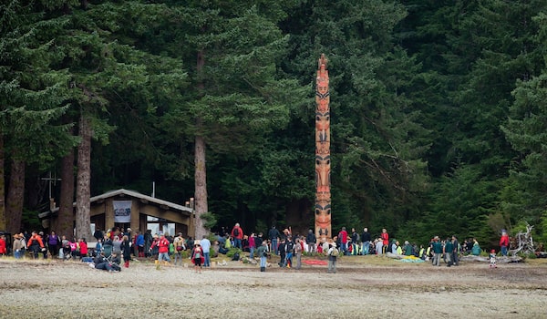The Gwaii Haanas legacy totem pole is seen after being raised in Windy Bay, B.C., on Lyell Island in Haida Gwaii in 2013.DARRYL DYCK/The Canadian Press
