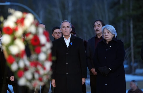 Mark Carney and Governor-General Mary Simon attend a vigil for the victims of a mass shooting in Tumbler Ridge, B.C., on Feb. 13.Christinne Muschi/The Canadian Press