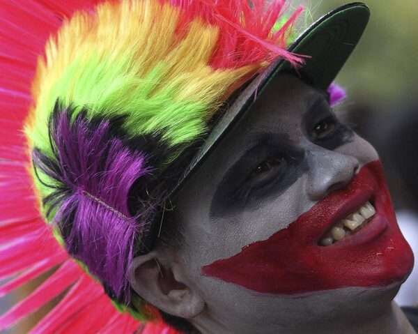An anti-government protester with his face painted attends a gathering in Bangkok on Feb. 5, 2014.SAKCHAI LALIT/The Associated Press