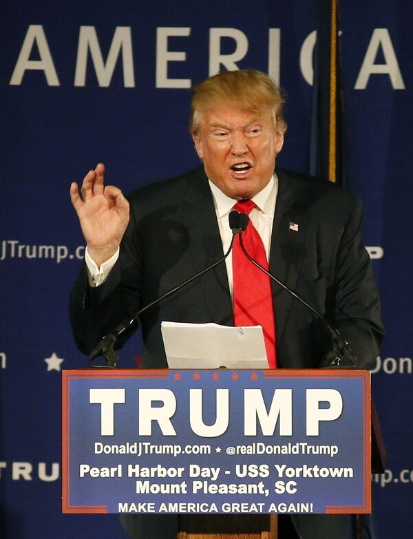 Donald Trump gestures as he speaks during a rally coinciding with Pearl Harbor Day on Monday.Mic Smith/The Associated Press
