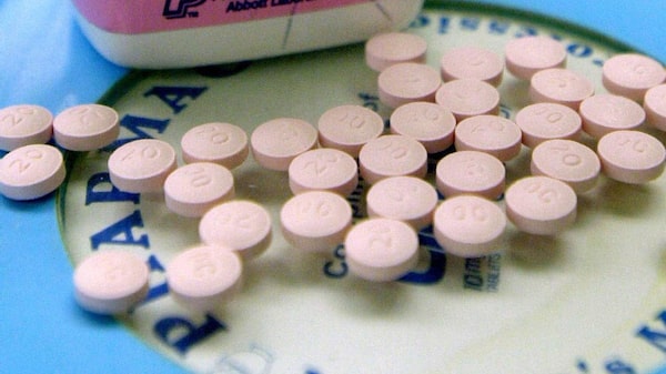 OxyContin tablets are shown in a pharmacy.
