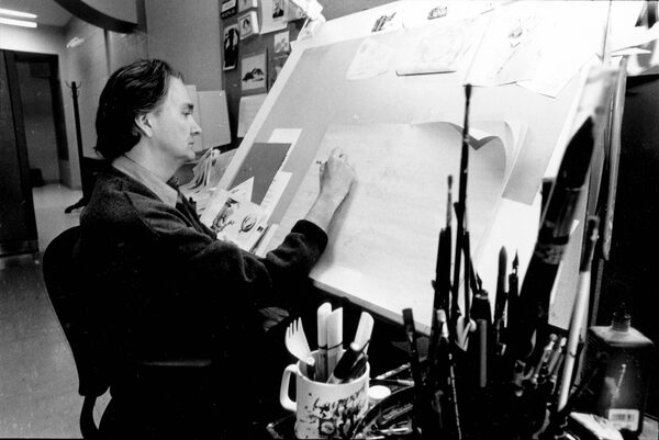 The Globe's Brian Gable illustrating at The Globe and Mail's old office on 444 Front Street.