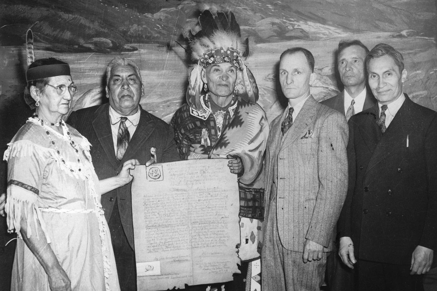 In the early 1920s, Cayuga Chief Deskaheh (Levi General) went to the League of Nations, the forerunner of the United Nations, on a Haudenosaunee passport to argue for our confederacy's sovereignty from Canada. The Canadian government, embarrassed, used international pressure to sway the growing support for his cause. In addition, the RCMP put pressure on our people by building a barracks on Six Nations, searching homes and prohibiting any Indians from cutting wood on their own lands. Less than a year later, while Deskaheh stayed in Geneva to try to gain an audience with the League, the Canadian government planned a coup of the traditional Haudenosaunee Confederacy Chiefs Council (HCCC). The RCMP forced our chiefs out by gunpoint, stole our wampum belts, organized an election and installed the Indian Act band council with only 56 votes. They couldn't even find 12 people willing to run for office without relying on those already employed by the Canadian government.