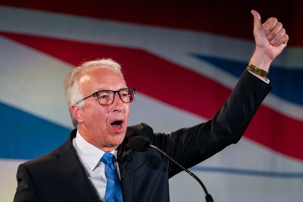 BC Conservative Leader John Rustad gives a thumbs up after addressing supporters on election night in Vancouver, on Oct. 19.ETHAN CAIRNS/The Canadian Press