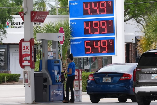 A customer pays for gasoline at a Mobil gas station in Miami on Wednesday.Marta Lavandier/The Associated Press