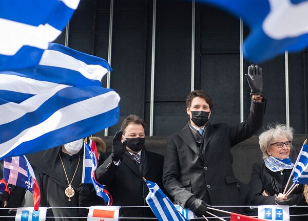 Prime Minister Justin Trudeau waves to the crowd as he attends the Greek Independence Day parade in Montreal, on March 27.Graham Hughes/The Canadian Press