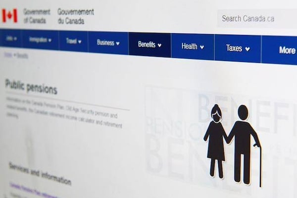 The Government of Canada public pensions web page on Jan. 9, 2018.The Canadian Press