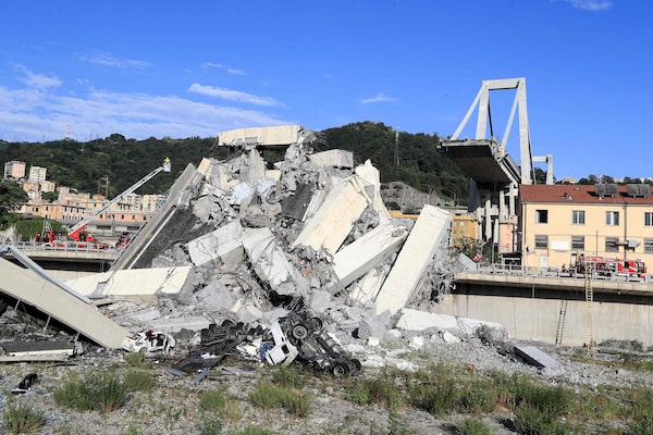 Rubble from the collapsed Morandi motorway bridge is strewn along the railway line in the northern port city of Genoa in 2018.VALERY HACHE/AFP/Getty Images