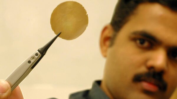 The material shown in its graphene oxide form, only one micron thick.