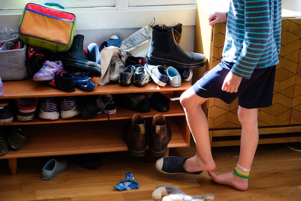 Katherine Goldstein's son, Asher Morrison, puts on his shoes near the entrance of their home in Durham, North Carolina on March 22.Cornell Watson/The Globe and Mail