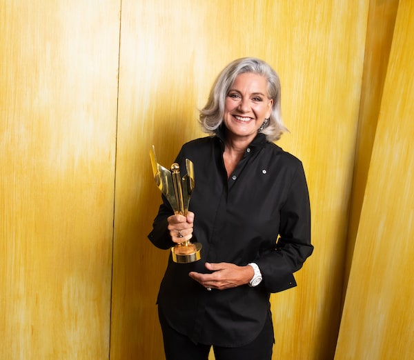 Lisa LaFlamme holding a Canadian Screen Award for Best National News Anchor in Toronto on Aug. 17.George Pimentel/The Canadian Press