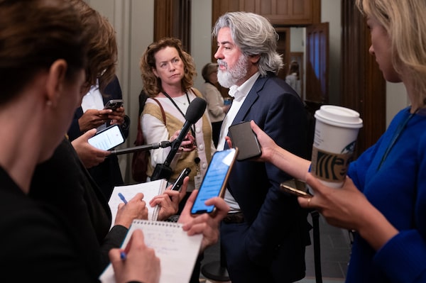 Minister of Canadian Heritage Pablo Rodriguez speaks to reporters before attending a caucus meeting on Parliament Hill in Ottawa, on May 17.Spencer Colby/The Canadian Press