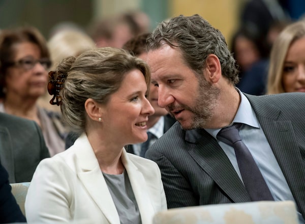 Gerald Butts speaks with Katie Telford at Rideau Hall in Ottawa, on July 18, 2018.Justin Tang/The Canadian Press
