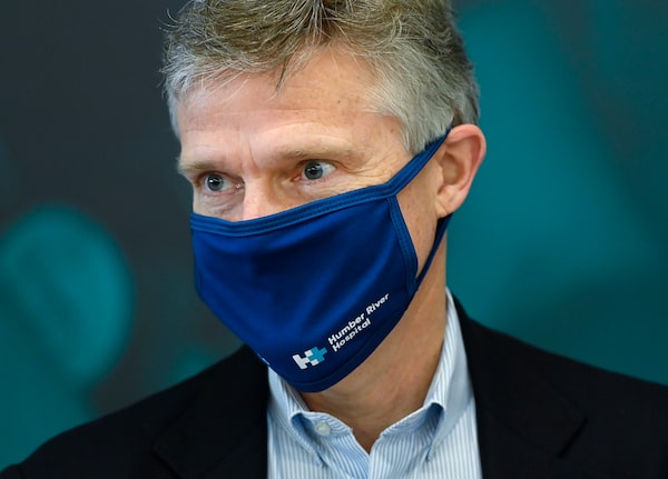 Rod Phillips looks on as he delivers baked goods and coffee to frontline health workers at Humber River Hospital in Toronto on Nov. 5, 2020.Nathan Denette/The Canadian Press