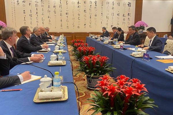 Mr. Champagne and members of the Canadian delegation, including Bank of Canada Governor Tiff Macklem, meet with Chinese officials at the Diaoyutai State Guesthouse on Friday.Bill Curry/The Globe and Mail