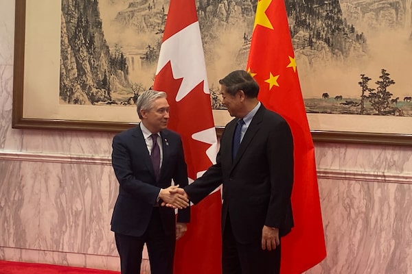 Finance Minister François-Philippe Champagne meets with China’s Vice-Premier He Lifeng at the Diaoyutai State Guesthouse in Beijing on Friday.Bill Curry/The Globe and Mail