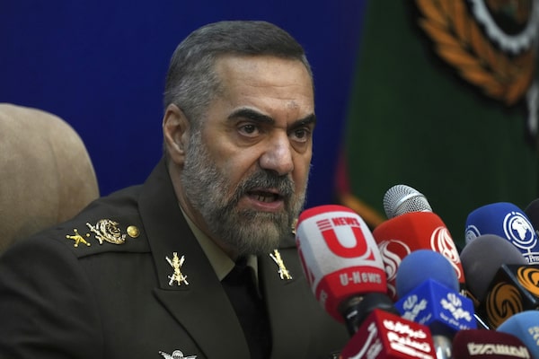 Iranian Defence Minister Gen. Mohammad-Reza Ashtiani speaks during a press conference in Tehran on March 6, 2023.Vahid Salemi/The Associated Press