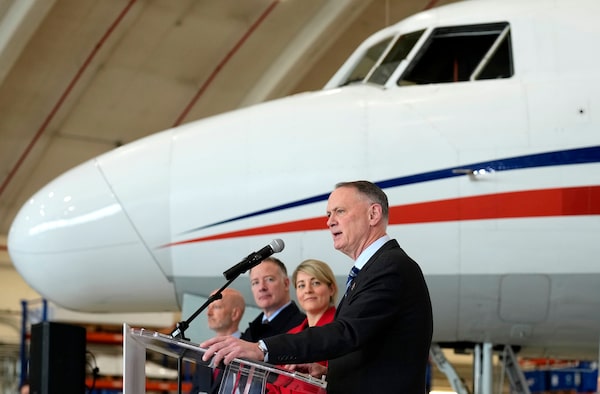 National Defence Minister David McGuinty speaks during an announcement at the National Research Council Flight Research Lab in Ottawa on Monday.Justin Tang/The Canadian Press
