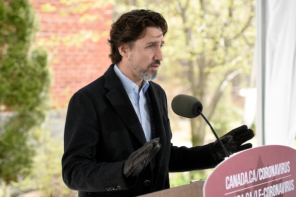 Prime Minister Justin Trudeau speaks during his daily news conference on the COVID-19 pandemic outside his residence at Rideau Cottage in Ottawa on May 9, 2020.Justin Tang/The Canadian Press