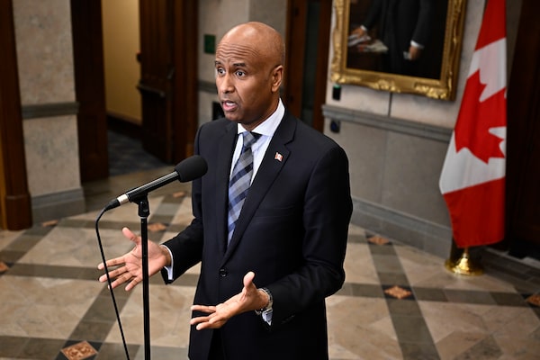 Minister of International Development Ahmed Hussen speaks in the Foyer of the House of Commons before Question Period on Parliament Hill in Ottawa, on Feb. 15.Justin Tang/The Canadian Press