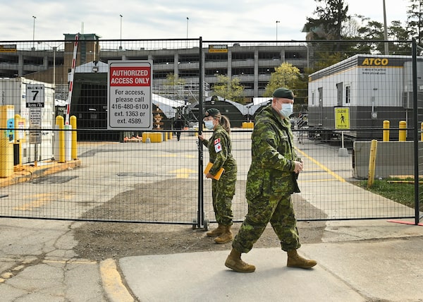 Military healthcare personnel prepare for patients at a mobile health unit at Sunnybrook Hospital during the COVID-19 pandemic in Toronto on April 27, 2021.Nathan Denette/The Canadian Press