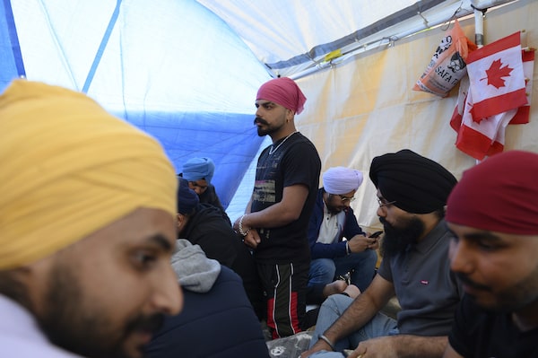 Community members gather in support of over 700 students who were duped by 'ghost' immigration consultants in a protest in Mississauga, Ont., on June 14.Christopher Katsarov/The Globe and Mail