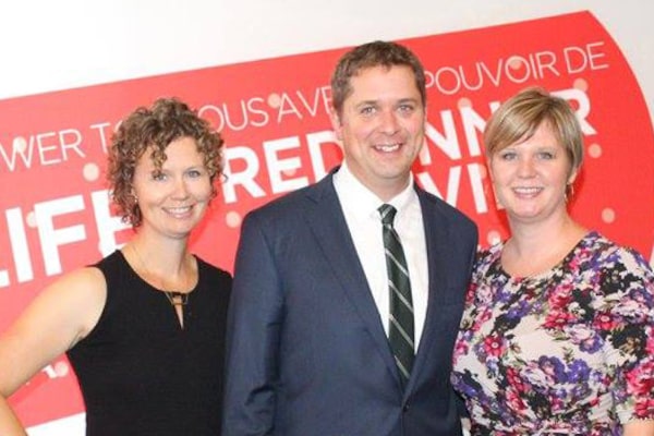 Erica Honoway (left), Andrew Scheer, and Jill Scheer, at a Canadian Blood Services event. Photo sourced from Facebook.Supplied